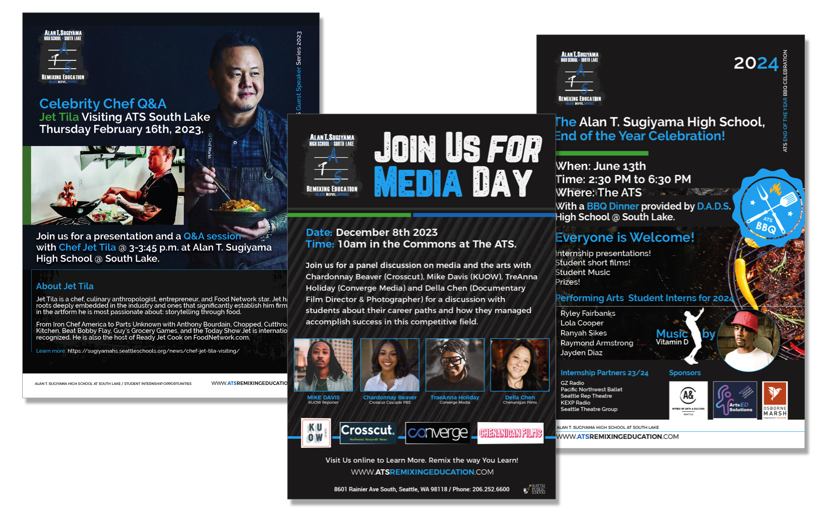 Being a small school with a small student population, SPS decided to make a name change as we emerged from era of COVID, and Osborne Marsh was hired to help reshape the schools brand and messaging to Alan T. Sujyama High School. The rest is history. Over the next 3 and a half years working with newly minted Principal Joe Powell, we created some “Good Trouble” as Dr. Powell loved to say (referencing John Lewis) with the goal to and remix how education could look and though the lens of a creative, collaborative approach with alignment to local arts organizations to form in-school learning and real world skill development and internships for careers in the arts and entertainment sectors.